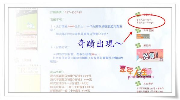 我有打算等到流覽人數快達十萬時,再來一個贈獎活動(這次要附上圖片做證明哦!),所以偶爾會瞄一下人數~~也因為這樣才會突然發現這個狀況~
