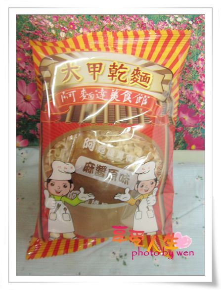 我收到的試吃品是大甲乾麵,醬包有油蔥、麻醬,另兩種上面寫了葷跟素,所以我也不知道是什麼醬。