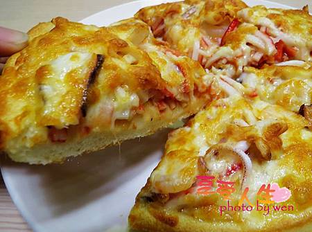 8818的比薩皮吃的出來是手工製的,比起冷凍餅皮,吃起來很鬆軟,口感也比較紮實,很有麵粉的香氣,一吃就可以感覺的出來。用料上也很豐富,吃起來很鮮嫩的海鮮料理,不會因為烘烤的關係變硬,還是保持著鮮嫩的口感。